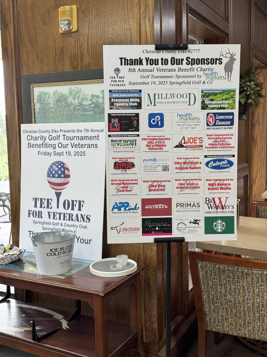The Christian County Elks Lodge hosted its 8th Annual Veterans Benefit Golf Tournament Sept 19 at the Springfield Golf and Country Club, and it was a tremendous success! With 63 players hitting the greens, the day was filled with camaraderie, competition, and generosity.