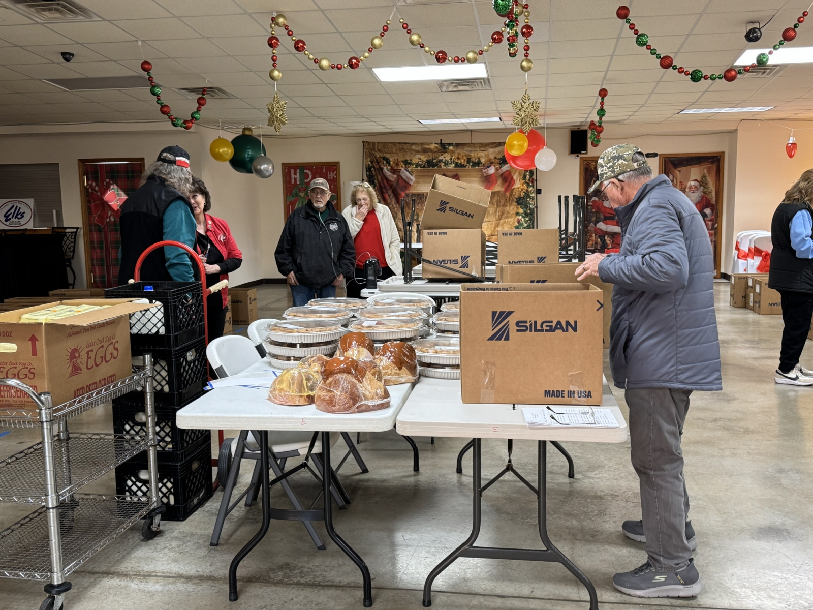 Just days before delivery, Scout Troop 201 of Ozark assembled an army of volunteers to pack over 200 boxes of food, totaling more than $200 per family. On delivery day, 25 Elks volunteers and friends hit the streets, and by noon every family was stocked with holiday favorites—including ham, eggs, milk, pie, bread, canned and boxed goods, and much more. Thank you to our delivery teams of Cherie and Shannon, Judy H and Jamie, Rex and Mike E, Kevin and Jerry, Earl and Gordon, Joe and Carolyn, Mike K and Jason, Bill and Mike M, Michael, and Joe and Rick.