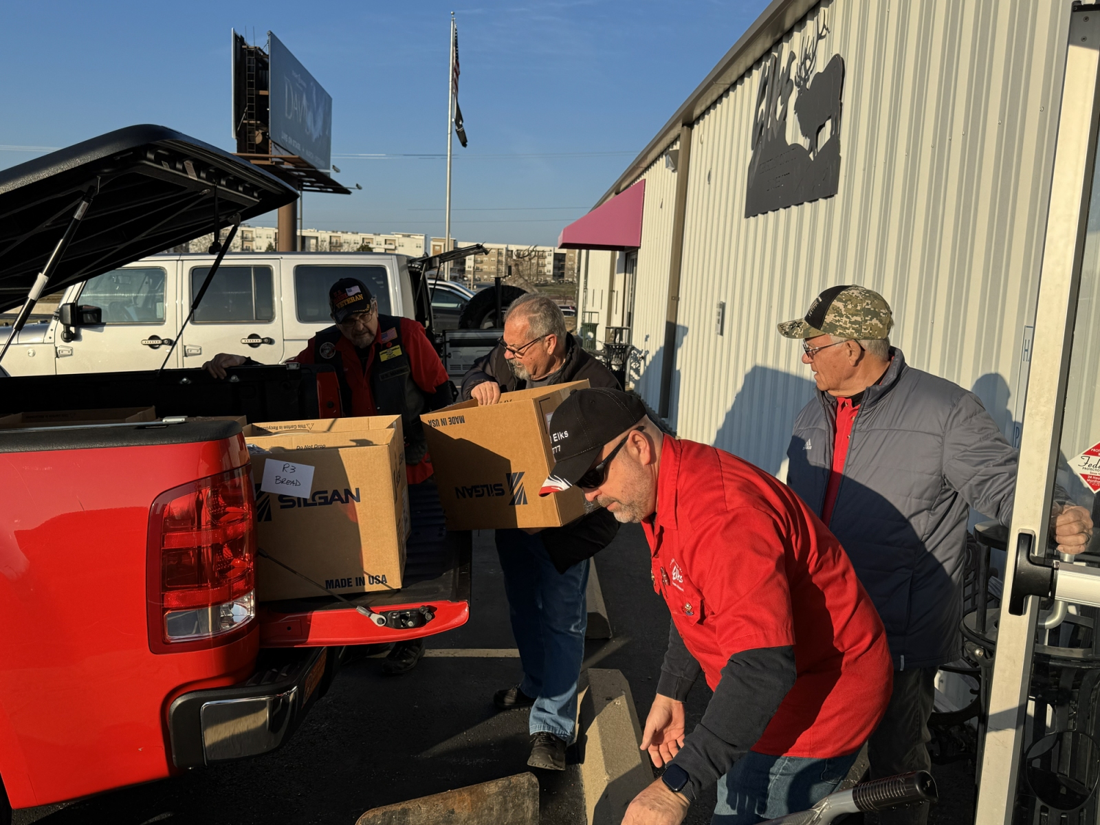 A project of this scale is only possible through teamwork and dedication. Project Chairman and Trustee Joe Edwards has been planning deliveries for months. “We work closely with Least of These Ozark Food Pantry to vet the families we deliver to. Over the years, the smiles on their faces and the gratitude they express will warm your heart,” Joe shared. Veterans Chairman Rex Krasche worked closely with Joe to help lead and coordinate the project.